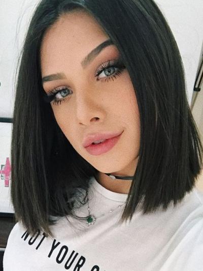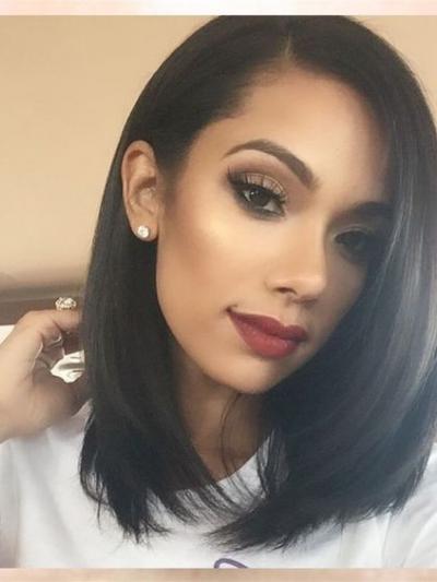 Black Bob Shoulder Length Medium Hairstyle Lace Front Synthetic Wig