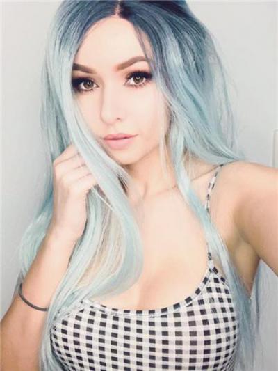 1bt Pastel Mint Green Long Straight Lace Front Wig