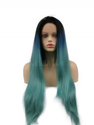 Mermaid Moana Gradient Sea Blue Long Straight Synthetic Wig