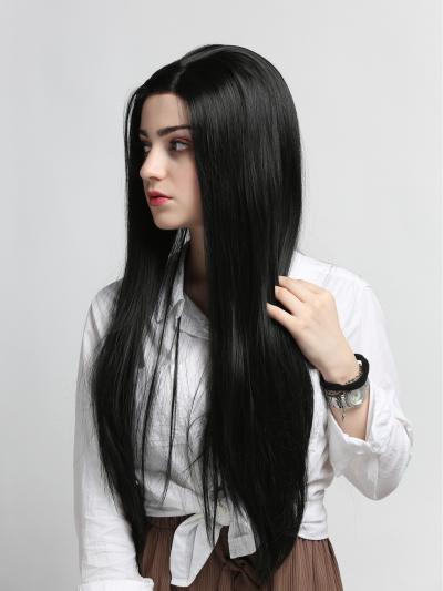 Long Straight Black Synthetic Lace Front Wig