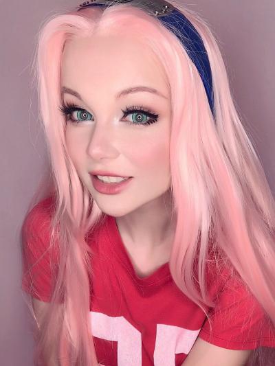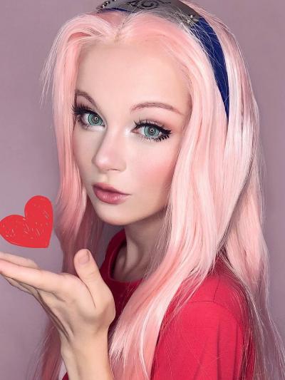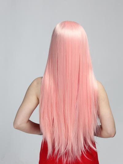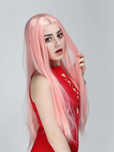 Cute Peach Pink Color Long Straight Synthetic Lace Front Wig